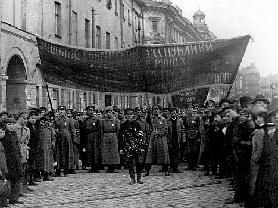 Октябрьское восстание 1917 года было бескровным, по крайней мере в Петербурге. Даже в других местах не рабочие были инициаторами насилия. На самом деле, именно царские генералы и иностранные империалисты превратили мирную революцию в кровавую гражданскую войну.
